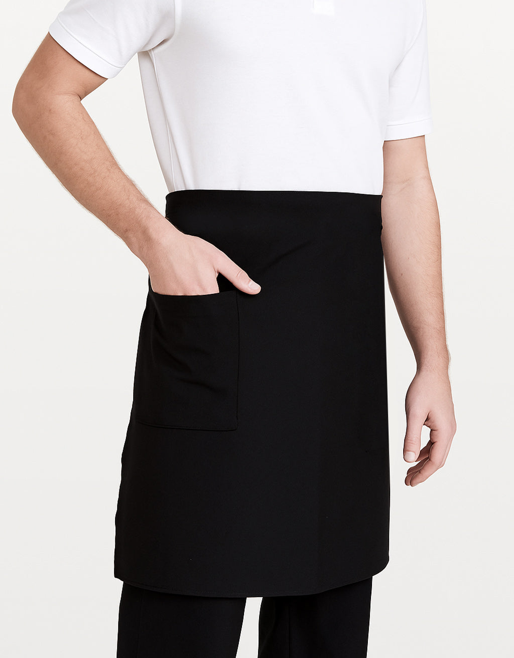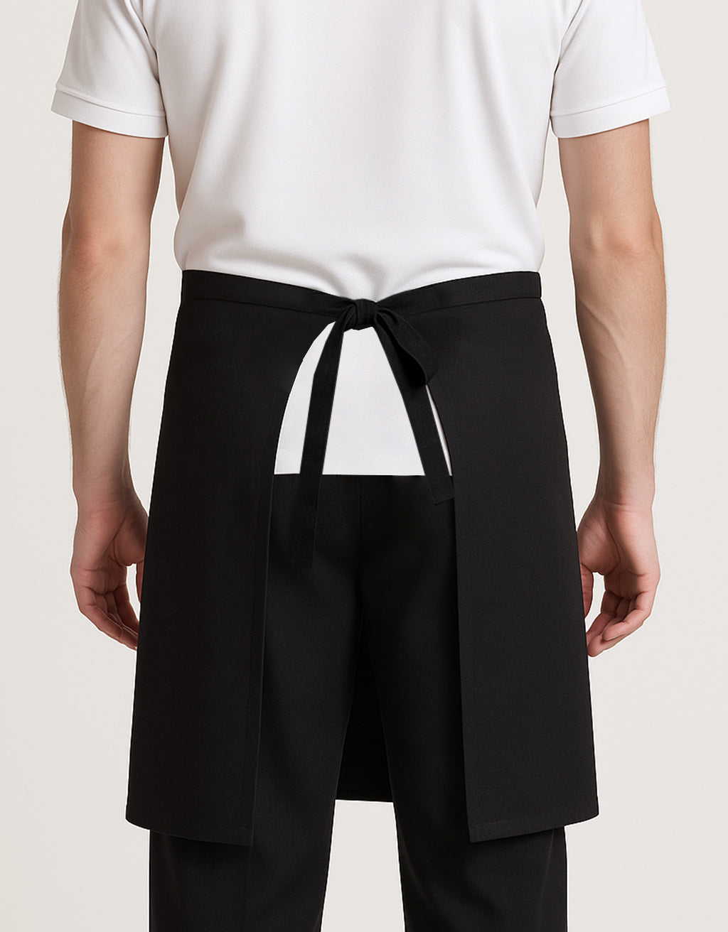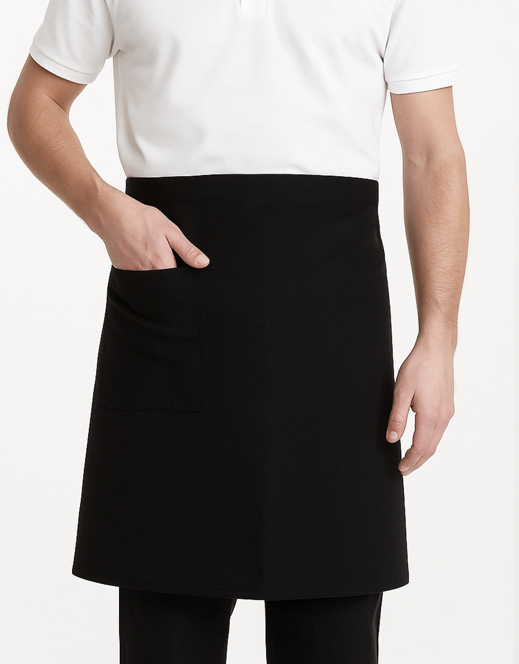 Bordo, kırmızı ve siyah renk seçenekleriyle üretilmiş belden bağlamalı cepli garson önlüğü, kafe, restoran, otel ve diğer hizmet sektörü mutfaklarında kullanılmak üzere tasarlanmıştır. Leke tutmaz, su geçirmez özelliklere sahip kumaşı sayesinde nemli bir bezle kolayca silinebilir, her zaman temiz ve şık bir görünüm sağlar.
