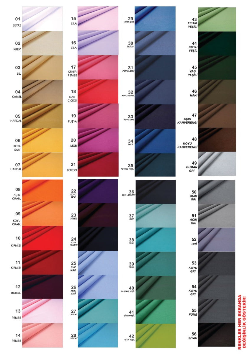 - Kumaş Türü: 1. sınıf alpaka kumaş (%75 polyester, %25 viskon)