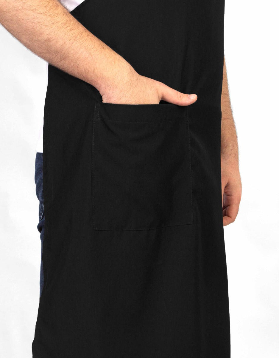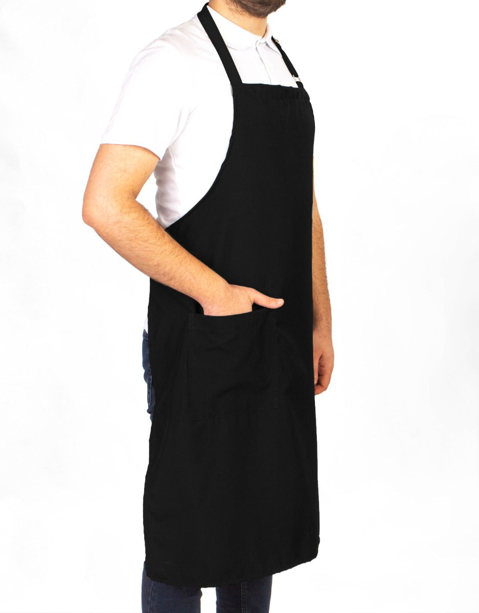 Bu siyah boyundan askılı mutfak önlüğü, kaliteli 1. sınıf alpaka kumaşı ile dayanıklı ve şık bir kullanım sunar. Ayarlanabilir omuz askıları sayesinde konforlu bir kullanım sağlar. Unisex tasarımıyla her iki cinsiyetin rahatlıkla kullanabileceği bu önlük, mutfakta profesyonel bir görünüm sağlar.